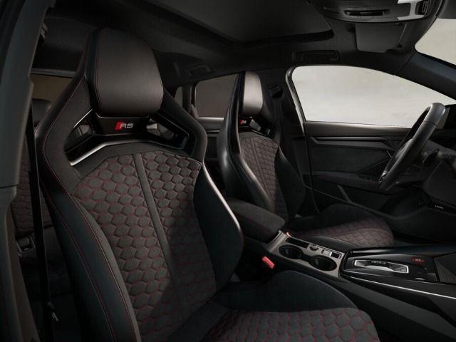 Mikrofaser Dinamica/Leder-Kombination mit Wabensteppung und RS-Schriftzug in den Vordersitzlehnen