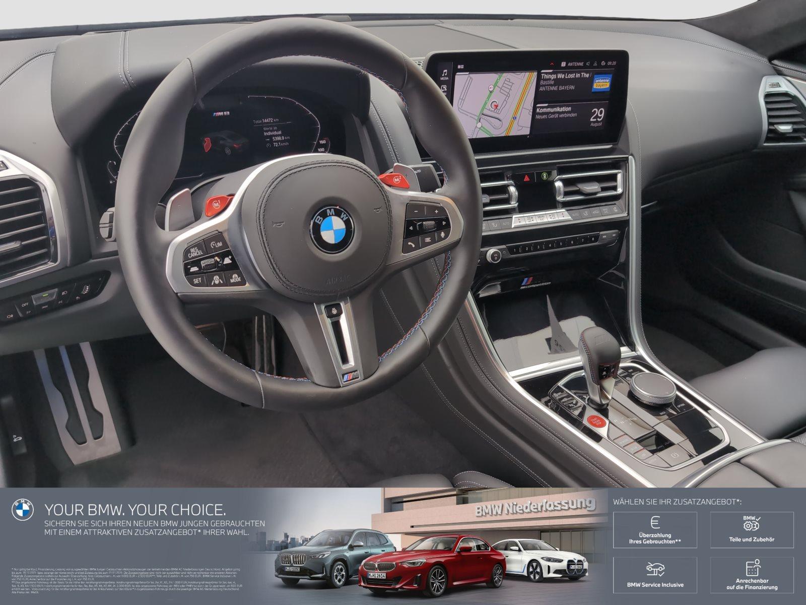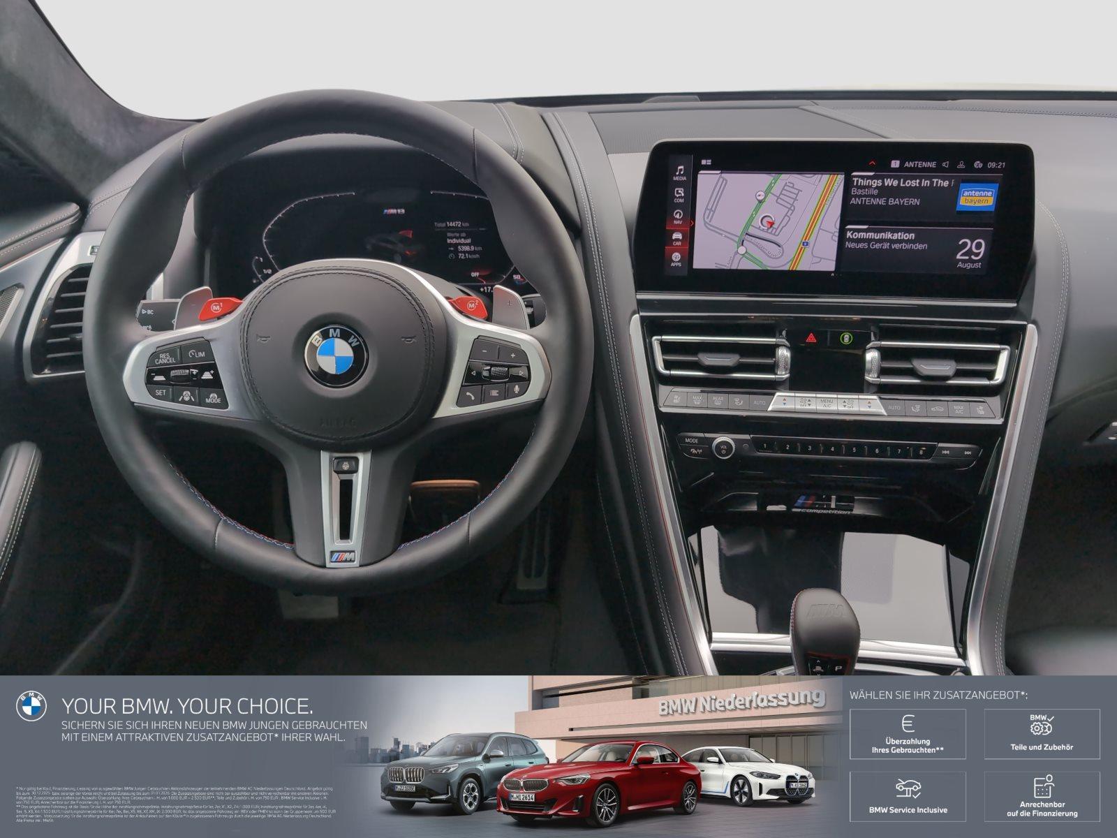 ABS, Active Guard, Aktive Sitzbelüftung vorn, Aktiver Fußgängerschutz, Alarmanlage mit Fernbedienung, Auto Start/Stop Funktion , BMW Apps, BMW Laserlicht, BMW Live Cockpit Professional (laufzeitgebundener Dienst), Bordcomputer, Competition Paket, Connected Package Professional (laufzeitgebundener Dienst), ConnectedDrive Services (laufzeitgebundener Dienst), DAB Tuner, Driving Assistant Professional, Dynamische Stabilitäts Control (DSC), Fahrerairbag, Fensterheber, elektrisch, Fernlichtassistent, Freisprecheinrichtung, Gesetzlicher Notruf, Individual, Klimakomfort-Frontscheibe, Komfortzugang, Leder, Lordose, Lordosenstütze für Fahrer und Beifahrer, M Competition Paket, M Dachhimmel Alcantara anthrazit, M Hochglanz Shadow Line, M Hochglanz Shadow Line mit erweiterten Umfängen, M Leuchten Shadow Line, M Sicherheitsgurte, M Sportabgasanlage, M Sportdifferenzial, M Sportsitze, Multifunktionslenkrad, Parking Assistant Plus, Reifendruck-Kontrolle, Servolenkung, Soft Close Automatik für Türen, Sonnenschutzverglasung, Telefonie mit Wireless Charging, Teleservices, Unfallfrei, Wärmekomfort Paket vorne, Wegfahrsperre, Winterräder statt Sommerräder (nur für Autovermieter), WLAN Hotspot, Zentralverriegelung, LM-Räder, 2 Jahre Premium Selection Garantie inkl. lt.Garantiebedingungen, Optional BMW Service Inklusive zusätzlichbestellbar,ehemaliges Mietfahrzeug, ehemalige unverbindliche Preisempfehlung desHerstellers 189.280,00 Euro0,Klimaautomatik mit 2-Zonenregelung, Irrtümer und Zwischenverkauf vorbehalten