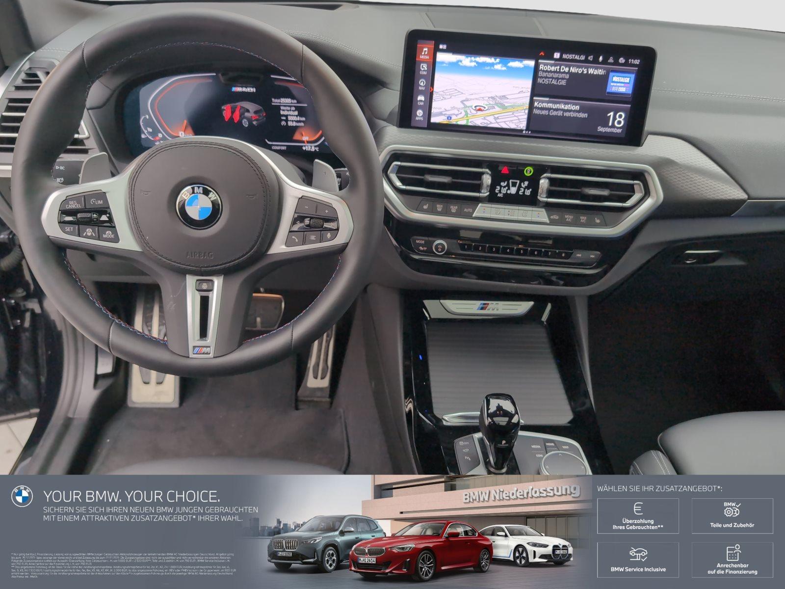 Ablagenpaket, ABS, Active Guard, Active Protection, Akustikverglasung, Alarmanlage mit Fernbedienung, Ambientes Licht, Anhaengerkupplung, Anhängerkupplung mit schwenkbarem Kugelkopf, Beifahrerairbag-Deaktivierung, BMW Apps, BMW Head-Up Display, BMW Laserlicht, BMW Live Cockpit Professional (laufzeitgebundener Dienst), Connected Package Professional (laufzeitgebundener Dienst), ConnectedDrive Services (laufzeitgebundener Dienst), DAB Tuner, Dachreling, Driving Assistant Professional, Fernlichtassistent, Galvanikapplikation für Bedienelemente, Harman Kardon Surround Sound System, Individual, Innen- und Außenspiegelpaket, Innenspiegel automatisch abblendend, Innovationspaket, Intelligenter Notruf, Klimaanlage oder -automatik, Klimaautomatik, Komfortzugang, Leder, Lehnenbreitenverstellung für Fahrer, Lenkradheizung, Lordose, Lordosenstütze für Fahrer und Beifahrer, M Aerodynamikpaket, M Dachreling Hochglanz Shadow Line, M Hochglanz Shadow Line, M Hochglanz Shadow Line, M Lederlenkrad, M Sportbremse, M Sportdifferenzial, M Sportfahrwerk, Panorama-Glasdach elektrisch, Parking Assistant Plus, Performance Control, Reifendruck-Kontrolle, Schiebedach, Sitzheizung, Sitzheizung für Fahrer und Beifahrer, Sitzlehnenverstellung im Fond, Sitzverstellung elektrisch, Sitzverstellung elektrisch mit Memory für Fahrersitz, Sonnenschutzverglasung, Sportfahrwerk, Sportsitze, Sportsitze für Fahrer und Beifahrer, Standheizung, Telefonie mit Wireless Charging, Teleservices, Variable Sportlenkung, Winterfreude Paket, Winterräder statt Sommerräder (nur für Autovermieter), WLAN Hotspot, LM Räder, ehemalige unverbindliche Preisempfehlung des Herstellers96.060,- EUR,Optional BMW Service Inklusive zusätzlich bestellbar, ehemaligesMietfahrzeug,2 Jahre BMW Premium Selection Garantie inkl. lt. Garantiebedingungen, Irrtümer und Zwischenverkauf vorbehalten