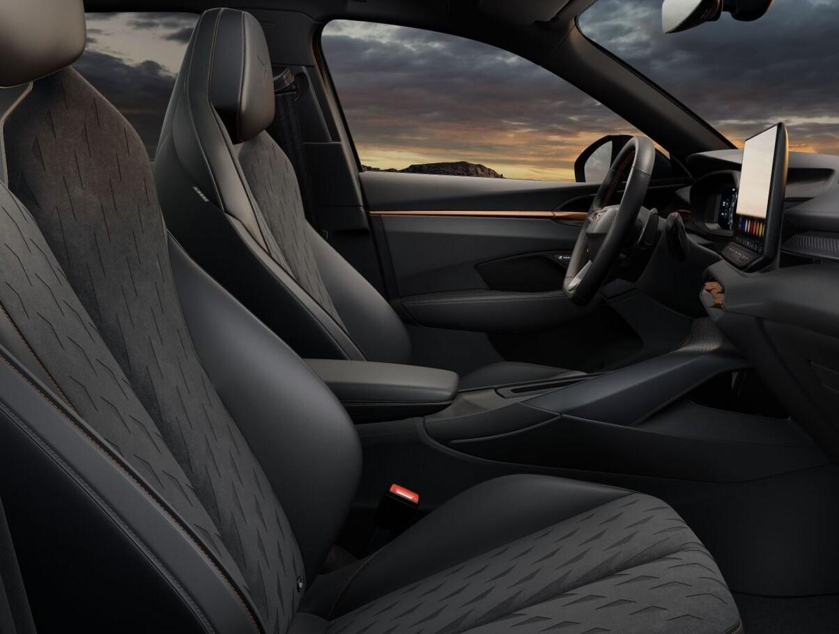 Edge-Paket (Ambiente-Beleuchtung Smart Ambient Light / Einstiegsleisten vorn beleuchtet / Mittelarmlehne hinten / Klimaanlage Climatronic 3-Zonen / Schließ-/Startsystem Kessy / Seitenscheiben hinten und Heckscheibe abgedunkelt / Heckklappe/-Deckel elektr. betätigt (öffnen + schliessen, sensorgesteuert) / Fahrassistenz-System: Automatische Distanzregelung (ACC) / Lenkrad heizbar (Sport/Leder) mit Multifunktion und Schaltfunktion / Außenspiegel elektr. verstell-, heiz- und anklappbar, Spiegelabsenkung, Welcome Light, Memory / Diebstahl-Warnanlage mit Innenraumüberwachung und Abschleppschutz), Design-Paket Dynamic (Ambiente-Beleuchtung Smart Ambient Light / Sitzbezug / Polsterung: Stoff Dinamica / Kunstleder Soul Black / Dark Slate-Grau mit Copper Steppung / Sitze vorn elektr. verstellbar (links mit Memory) / Sitzheizung vorn / Außenspiegel elektr. verstell-, heiz- und anklappbar, Spiegelabsenkung, Welcome Light, Memory), Intelligent-Drive-Paket (Kamerasystem Umgebungsansicht (Top View, 360°) / Fahrassistenz-System: Fernlichtassistent / Fahrassistenz-System: Totwinkel-Assistent mit Auspark-Assistent, Spurwechselassistent und Ausstiegswarnung / Fahrassistenz-System: Intelligent Park Assist (IPA) / Fahrassistenz-System: Intelligenter Parkassistent inkl. trainiertem Parken / Fahrassistenz-System: Pre-Crash-System / Fahrassistenz-System: Spurhalteassistent Plus inkl. Travel Assist, Emergency Assist und Stauassistent), Digital Drive-Paket (Kombiinstrument digital (10,25 Zoll) / Kombiinstrument digital (virtual cockpit) / Audio-Navigationssystem mit Touchscreen Farbbildschirm 12,9" / Head-up-Display), Audiosystem: Sennheiser Sound-System (340 Watt) (11 Lautsprecher / Subwoofer), Anhängerkupplung Vorbereitung, Steckdose 230V im Gepäckraum (Steckdose (12V-Anschluß) im Koffer-/Laderaum), Reserverad als Notrad, Mobile Online Dienste Cupra Connect plus, Induktionsladeschale für Smartphone, Isofix-Aufnhamen für Kindersitz an Beifahrersitz und Rücksitz, LM-Felgen 8x18, Reifen 235/55 R18, Schadstoffarm nach Abgasnorm Euro 6e (EU6 EB), Serviceintervall 30.000 km oder 2 Jahre, Motor 1,5 Ltr. - 110 kW 16V eTSI Mild-Hybrid (DXDB) (Mild-Hybrid 110 kW (Motor 1,5 Ltr. - 110 kW eTSI)), 9 Lautsprecher, Dachhimmel schwarz, Doppeltonhorn, Fahrassistenz-System: Abbiegebremsfunktion und Ausweichunterstützung, Fußraumbeleuchtung LED, Gepäck-/Laderaumboden doppelt, Geschwindigkeitsbegrenzer mit vorausschauender Geschw.-Regelung, Innenspiegel mit Abblendautomatik, Karosserie: 5-türig, Kopfstützen hinten (3-fach), Lendenwirbelstützen vorn, elektr. verstellbar, Leseleuchten hinten LED, Leseleuchten vorn LED, Parkbremse elektrisch mit Auto-Hold-Funktion, Pedale Aluminium-Design, Radioempfang digital (DAB+), Radstand Standard, Sitz vorn links höhenverstellbar, Sitz vorn rechts höhenverstellbar, Sonnenblende links mit Spiegel (beleuchtet), Sonnenblende rechts mit Spiegel (beleuchtet), Steckdose (12V-Anschluß) vorn, Warnanlage für Sicherheitsgurt-System, Full Link (MirrorLink, Apple CarPlay und Android Auto), Sprachsteuerungs-System, USB-Schnittstelle vorn (2-fach, Typ C), Antriebsart: Frontantrieb, Elektron. Stabilitäts-Programm (ESP) mit Bremskraftverstärker elektro-mechanisch, Wegfahrsperre (elektronisch), Getriebe 7-Gang - Doppelkupplungsgetriebe DSG, Airbag Beifahrerseite abschaltbar, Airbag Fahrer-/Beifahrerseite, Fensterheber elektrisch vorn + hinten mit Komfortschaltung, Kopf-Airbag-System, Mittelarmlehne vorn, Seitenairbag, Seitenairbag vorn mitte (Central Airbag), Fahrassistenz-System: Fahrprofilauswahl (CUPRA Drive Profile), Dachreling schwarz, Wärmeschutzverglasung, Fahrassistenz-System: Verkehrszeichenerkennung, Notrufsystem, Progressivlenkung, Heckleuchten LED mit dynamischem Blinklicht, Licht- und Regensensor, Lichtassistent (Coming Home, Leaving Home), Nebelscheinwerfer LED mit Abbiegelicht, Scheinwerfer Voll-LED, Tagfahrlicht LED, Einparkhilfe vorn und hinten, Fahrassistenz-System: Ablenkungs- und Müdigkeitserkennung, Fahrassistenz-System: Kreuzungs-Assistent, Fahrassistenz-System: Spurhalteassistent, Fahrassistenz-System: Umfeldbeobachtungssystem (Front assist) mit City-Notbremsfunktion, Reifenkontroll-Anzeige