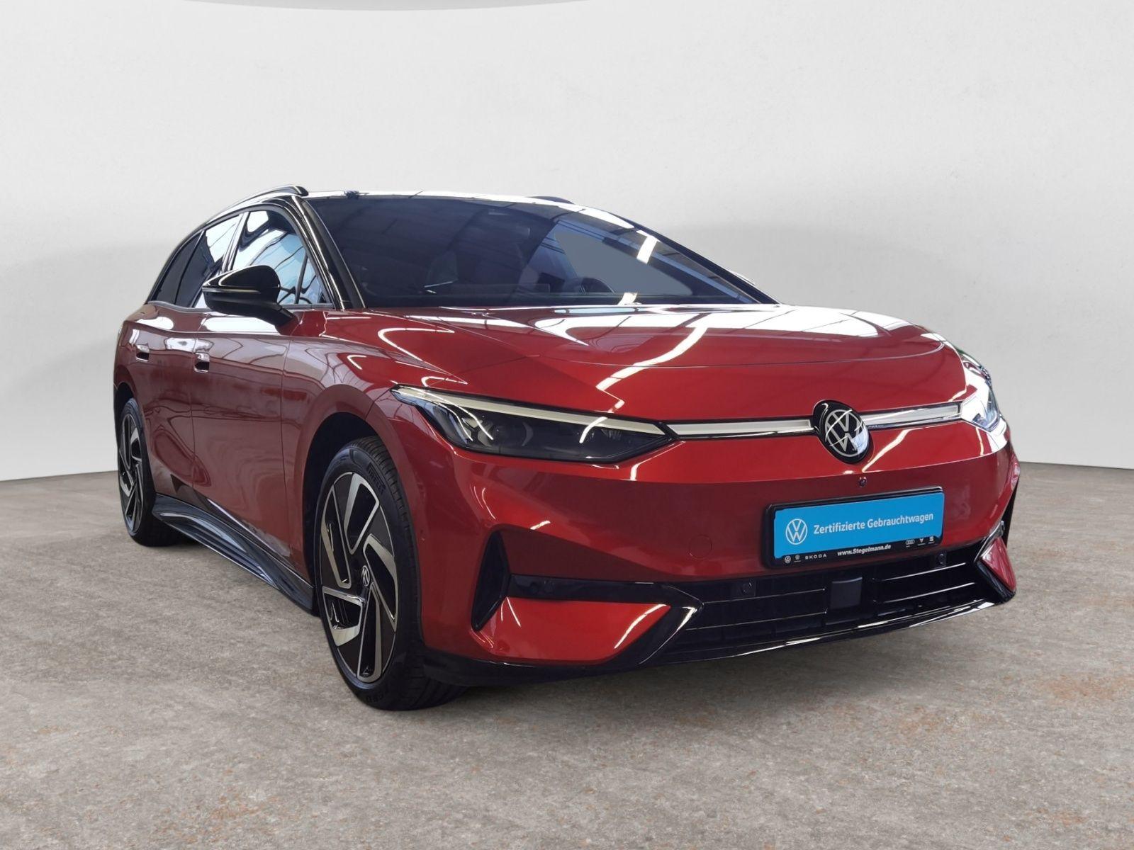 Dieser gebrauchte VW ID.7 als Kombiversion überzeugt durch seine beeindruckende elektrische Reichweite von 596 km und kraftvolle 286 PS. Das Fahrzeug wurde erstmals 2025 zugelassen und hatte nur einen Vorbesitzer. Die rote Metallic-Lackierung in Kombination mit der schwarzen Stoffausstattung verleiht dem Wagen einen sportlich-eleganten Charakter. Der Heckantrieb sorgt für ein dynamisches Fahrgefühl, während die Schnellladefunktion mit nur 9 Minuten Ladezeit für maximale Flexibilität im Alltag sorgt. Die 3-Zonen-Klimaautomatik, das Head-up-Display und das Navigationssystem bieten höchsten Komfort auf jeder Fahrt. Besonders praktisch: die elektrische Heckklappe und die Dachreling für zusätzlichen Stauraum. Vollständige Servicehistorie und Garantie Umfangreiche Sicherheitsausstattung mit Front-, Seiten- und weiteren Airbags 360-Grad-Kamera und automatisches Einparksystem Adaptiver Tempomat und Spurhalteassistent Wärmepumpe für effiziente Reichweite Massagesitze und elektrisch verstellbare Sitze mit Lendenwirbelstütze Apple CarPlay, Android Auto und kabelloses Laden LED-Scheinwerfer mit adaptivem Kurvenlicht Anhängerkupplung (schwenkbar) mit 1200 kg gebremster Anhängelast 8 Jahre Batteriegarantie bis 160.000 km
